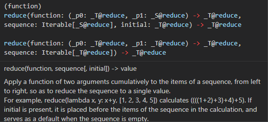 → "from functools import reduce" 해야 사용이 가능하다.